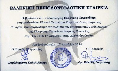 Ο Χειρουργός Οδοντίατρος Σαράντης Α. Τσιρτσίδης,στην Αλεξανδρούπολη, αποφοίτησε τον Φεβρουάριο του 1993 από το Τμήμα Οδοντιατρικής της Σχολής Επιστημών Υγείας του Αριστοτέλειου Πανεπιστήμιου Θεσσαλονίκηs, όπου πραγματοποίησε εξ’ολοκλήρου τις σπουδές του μετά την εισαγωγή του με Πανελλήνιες Εξετάσεις. Από τον Ιούνιο του 1993 έως τον Ιούνιο του 1994 υπηρέτησε την στρατιωτική του θητεία ως Οδοντίατρος στο Οδοντιατρείο του 212 Τάγματος Υγεινομικού στην Αλεξανδρούπολη. Είναι παντρεμένος και έχει δύο παιδιά. Είναι μέλος του Οδοντιατρικού Συλλόγου Έβρου και από το 1993 διατηρεί Ιδιωτικό Οδοντιατρείο στο κέντρο της πόλης της Αλεξανδρούπολης παρέχοντας υπηρεσίες που καλύπτουν όλο το φάσμα της Οδοντιατρικής. Πιστός στην φιλοσοφία της Συνεχούς Επαγγελματικής Επιμόρφωσης και της διαρκούς ανανέωσης και ενημέρωσης για τις εξελίξεις στην Οδοντιατρική και την εφαρμογή τους στην καθημερινή κλινική πράξη,συμμετέχει σε πλήθος γενικών και εξειδικευμένων σεμιναρίων, καθώς και σε διαδυκτιακά E-learning,Webinars .Είναι άριστος γνώστης της Αγγλικής Γλώσσας και κάτοχος του Cambridge English: Proficiency (CPE).Είναι μέλος του διεθνούς επιστημονικού οργανισμού International Team for Implantology (ITI http://www.iti.org / ).